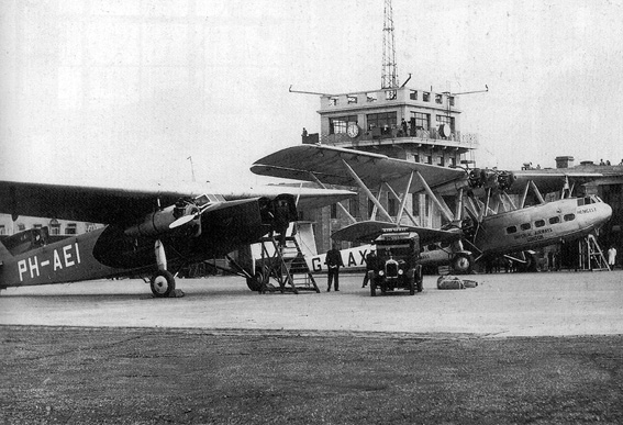 'Fokker' airliners on the tarmac apron in the late 1930's. |