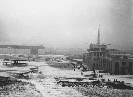 (above) a snowy airport in the 1930's |