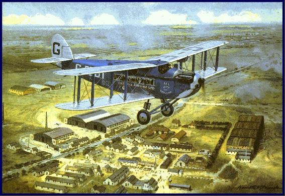 DH34 of the Instone Air Line, en route for Paris, over Plough