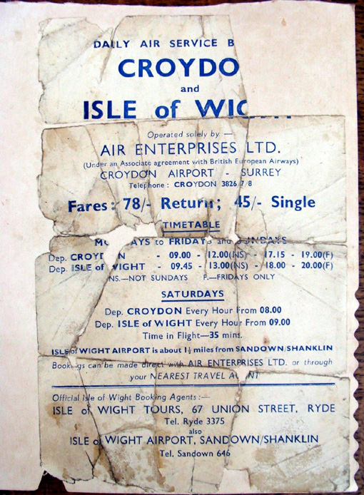 Croydon-Birmingham (B.I.F.) scheduled services. B.A.C.A. member. |