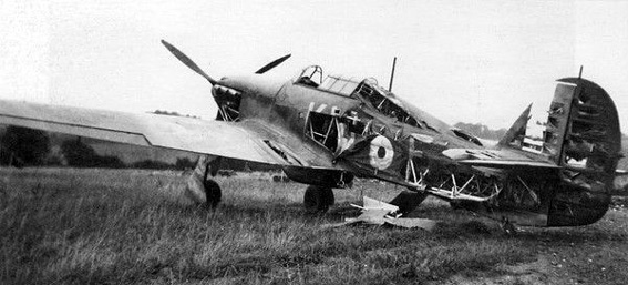(above) A damaged Hurricane of 615 Squadron. August 1940 |