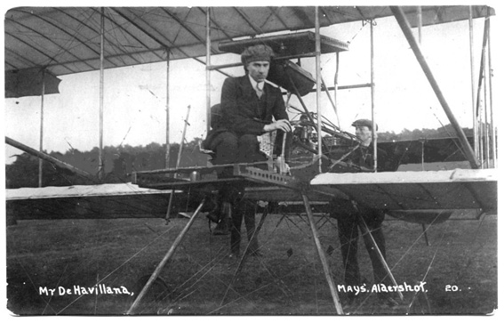 (below) Pilot Geoffrey de Havilland at the London Aerodrome