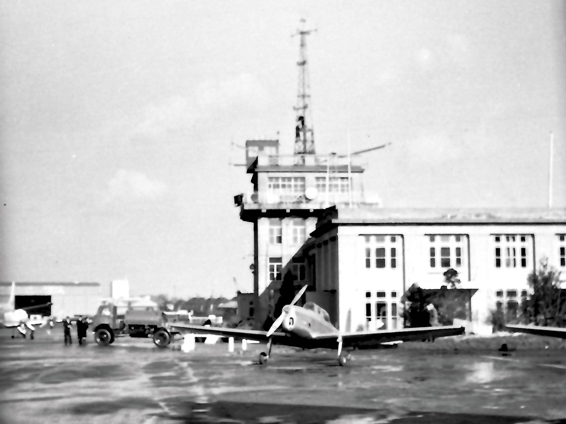 an ex RAF 'DHC1 Chipmunk', on the tarmac in 1955. |