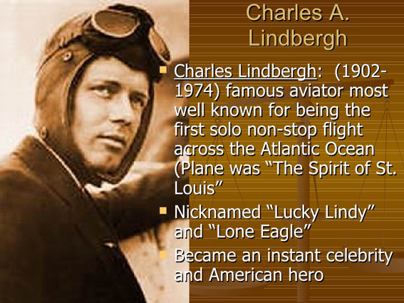 Slim, Lucky Lindy, and The Lone Eagle, was an American aviator,