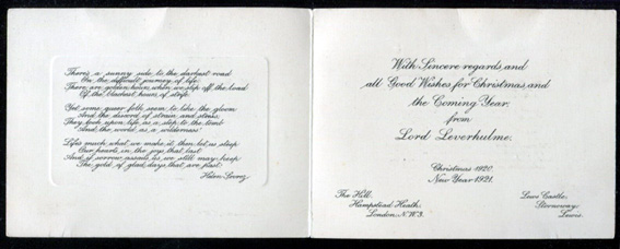 (below) Lord Leverholme. May 1920. Card. |