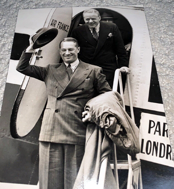 (below) Maurice Chevalier arrives from Paris. |