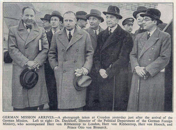 (below) Von Ribbentrop arriving at Croydon in 1935. |
