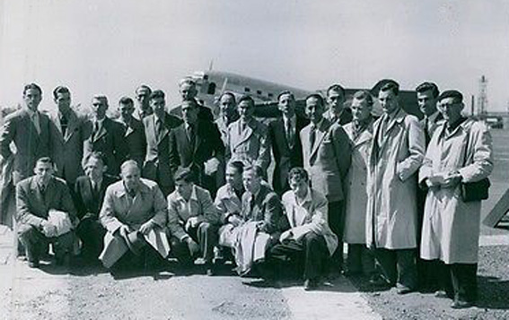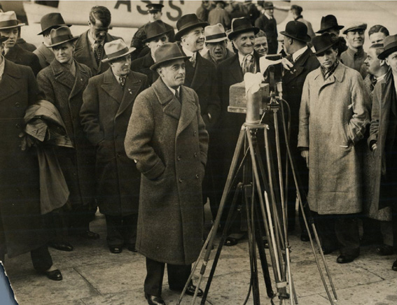 M.Da Ladier giving a speech at the Airport in 1950 |