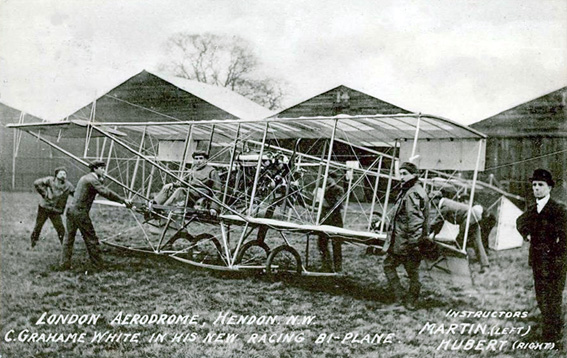 of two famous English Aerodromes, Brooklands and Hendon. It was