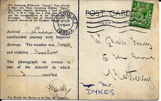 (below) A souveneir card of a flight in 1932. |