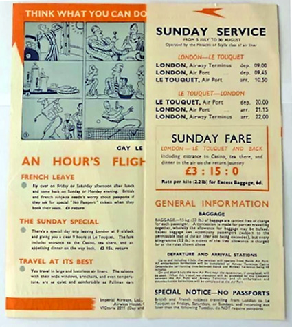 (below) Imperial Airways Timetable Le Touquet.1936. |