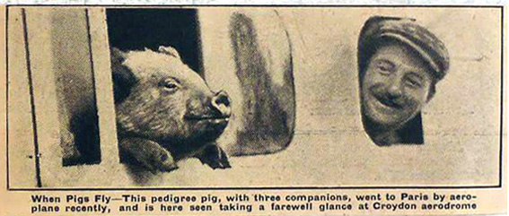 1934 from Paris to Croydon, between 'Homing pigeons' an 'Aircraft'