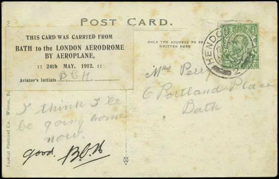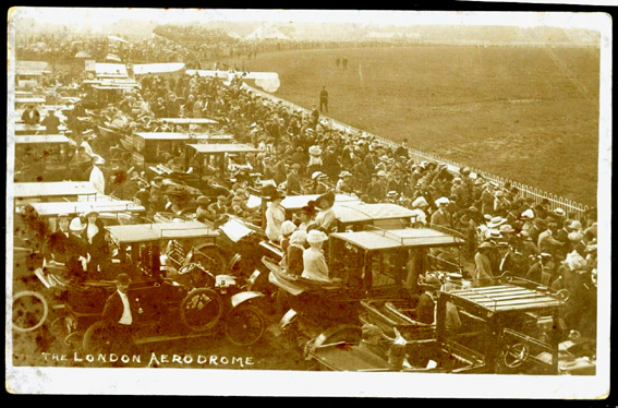 (below) London Aerodrome Hendon card posted 1913, Picture