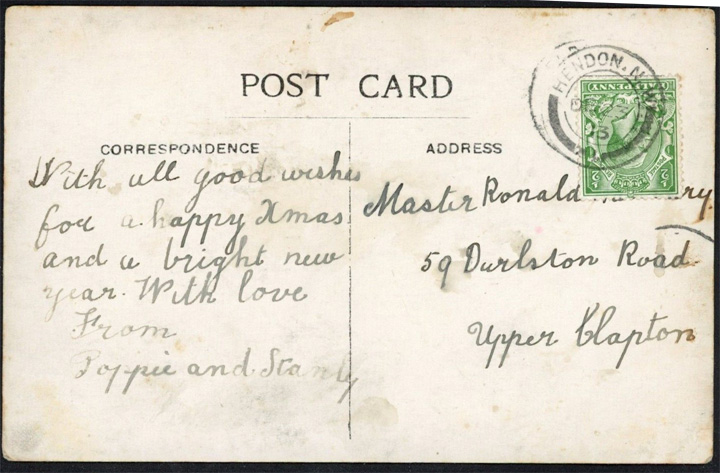 far back as 1910. Below is a Post Card to Bath from Hendon 'The