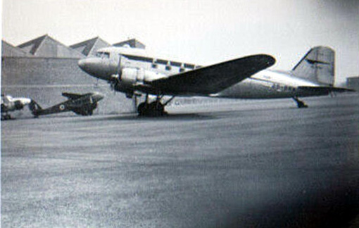 C47 Dakota of P.A.A.C. at Croydon in 1950. An R.A.F. Dominie is in the background, with an Anson behind it.