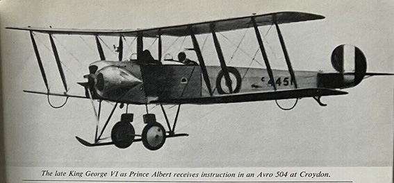 Albert in an 'Avro 504J'. This aircraft RAF No C4451 became the