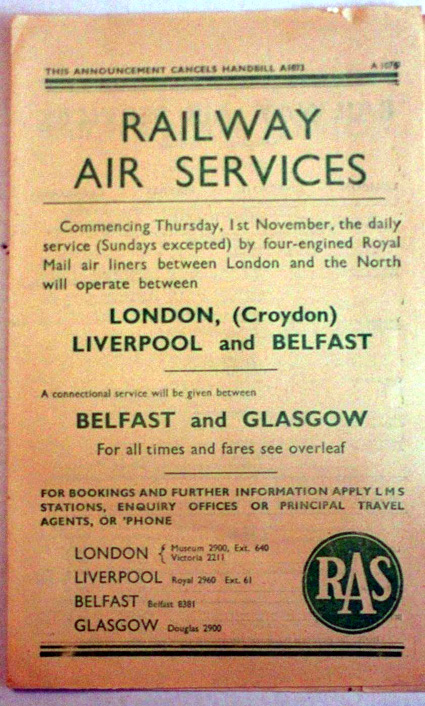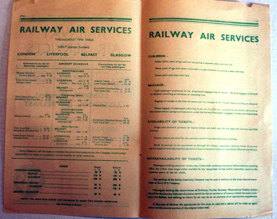 schedule to Belfast Railway Air Services resumed peacetime flights