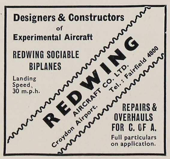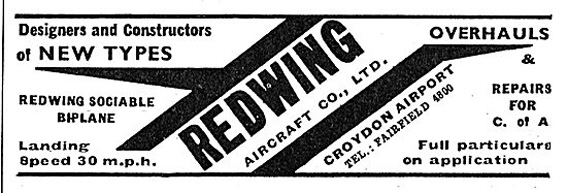 Aircraft company at Croydon was reorganised as Redwing Aircraft