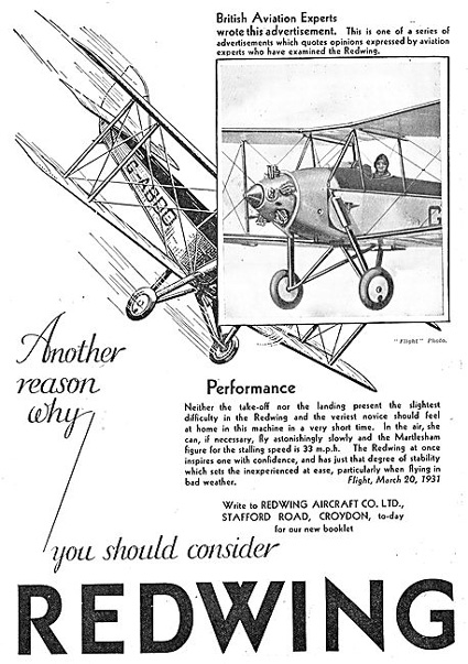 the Redwing Aircraft Co Ltd. In 1932, the designer & founder