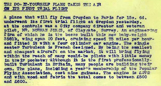 from Redhill Aerodrome with the first Rollason aircraft (a Turbulent)