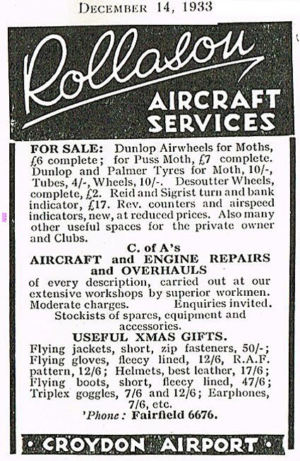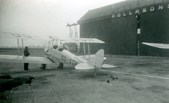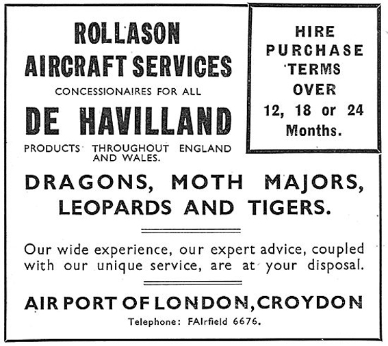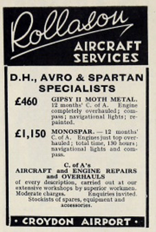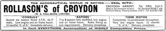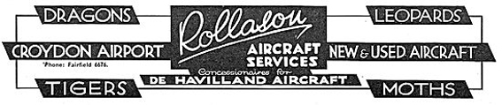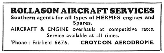 aircraft in front of the clearly marked 'Rollason' hangars. early